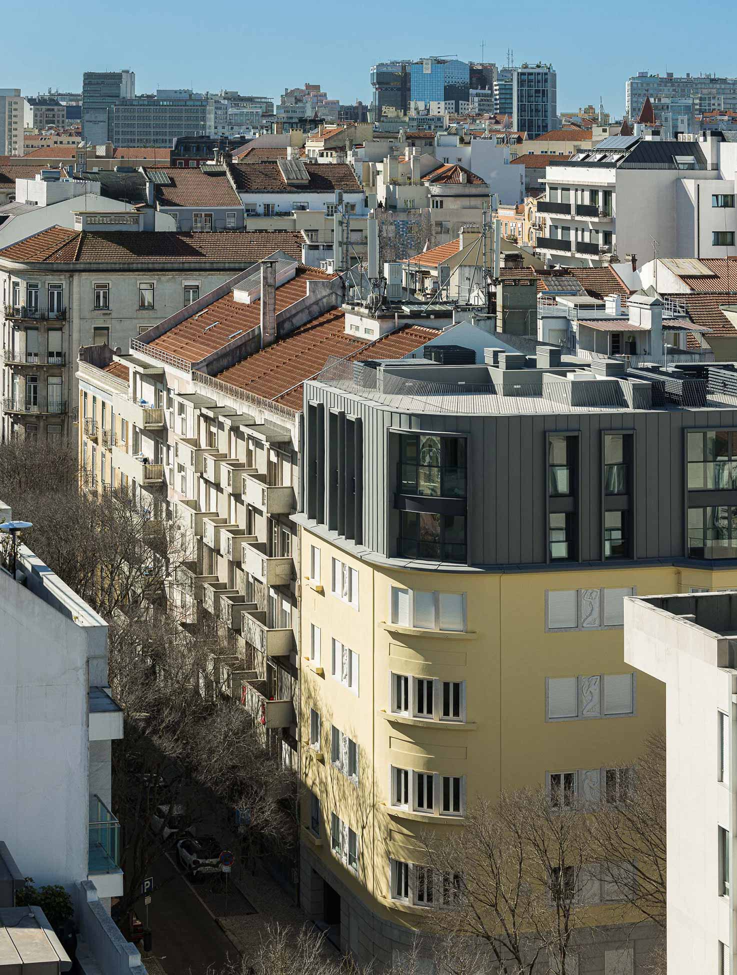 The intervention in the existing building, constructed in the 1930s within the context of the Modernist period in Portugal, was based on a profound reconfiguration of the interior layout and its expansion, with the addition of three new residential floors and two underground levels for parking.