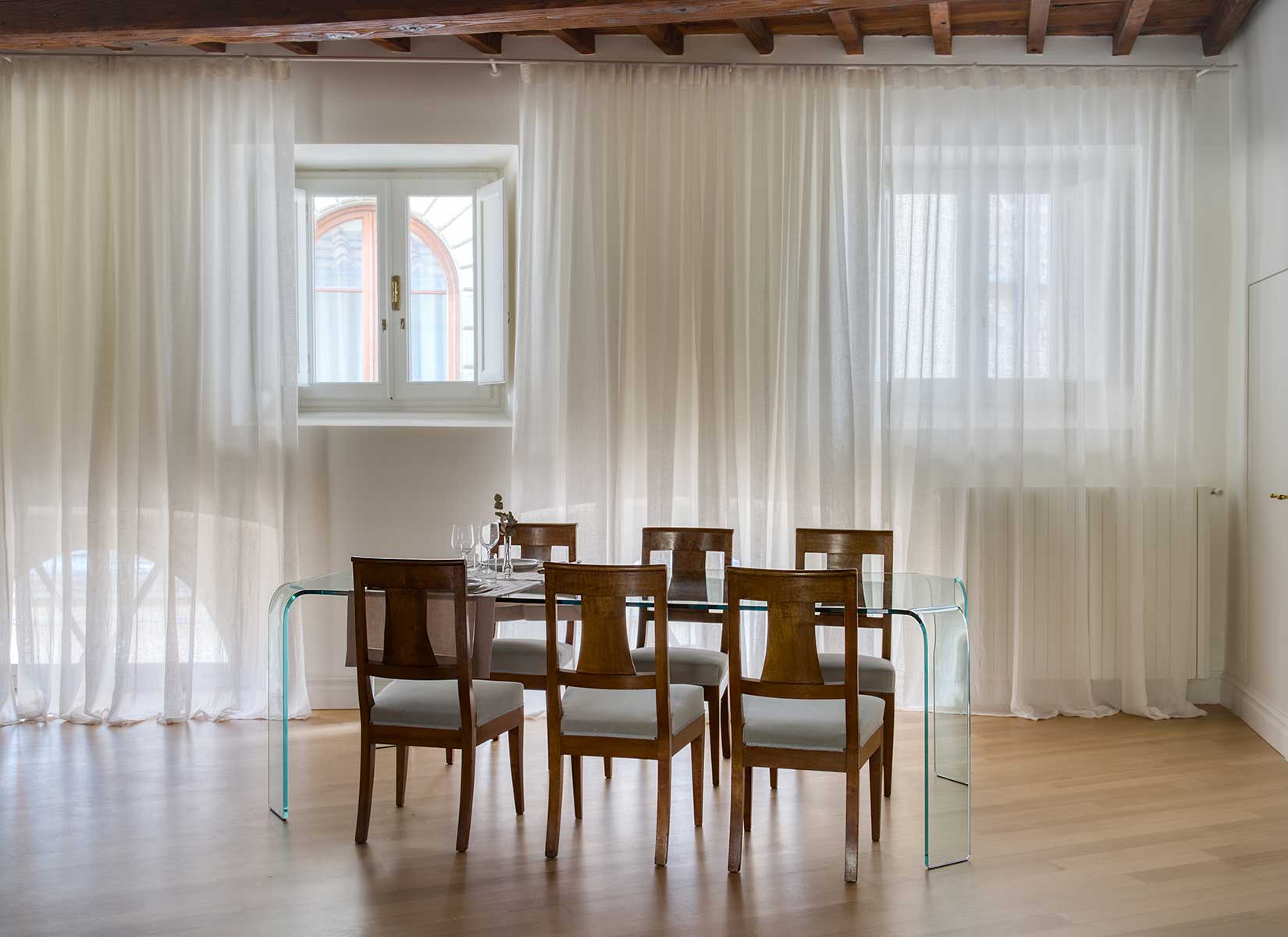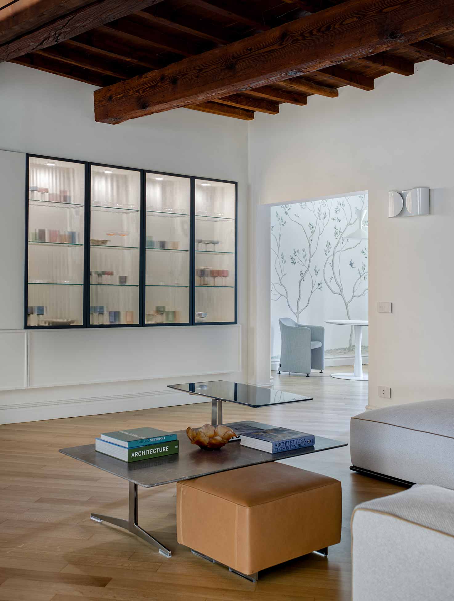 Within a typical Florentine Renaissance building, located in Piazza Santa Trinità, a 130-square-meter apartment masterfully combines the elegance of classical and Baroque styles with the modernity of contemporary design.