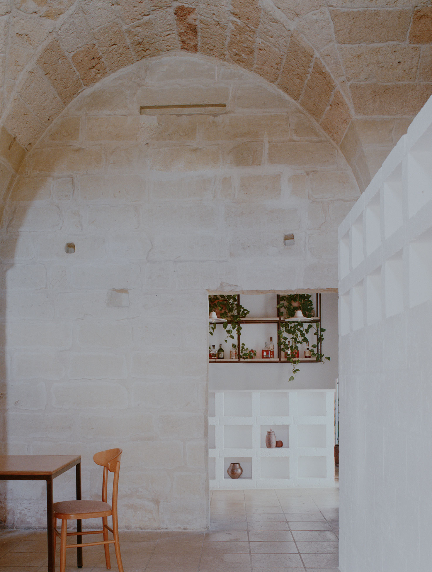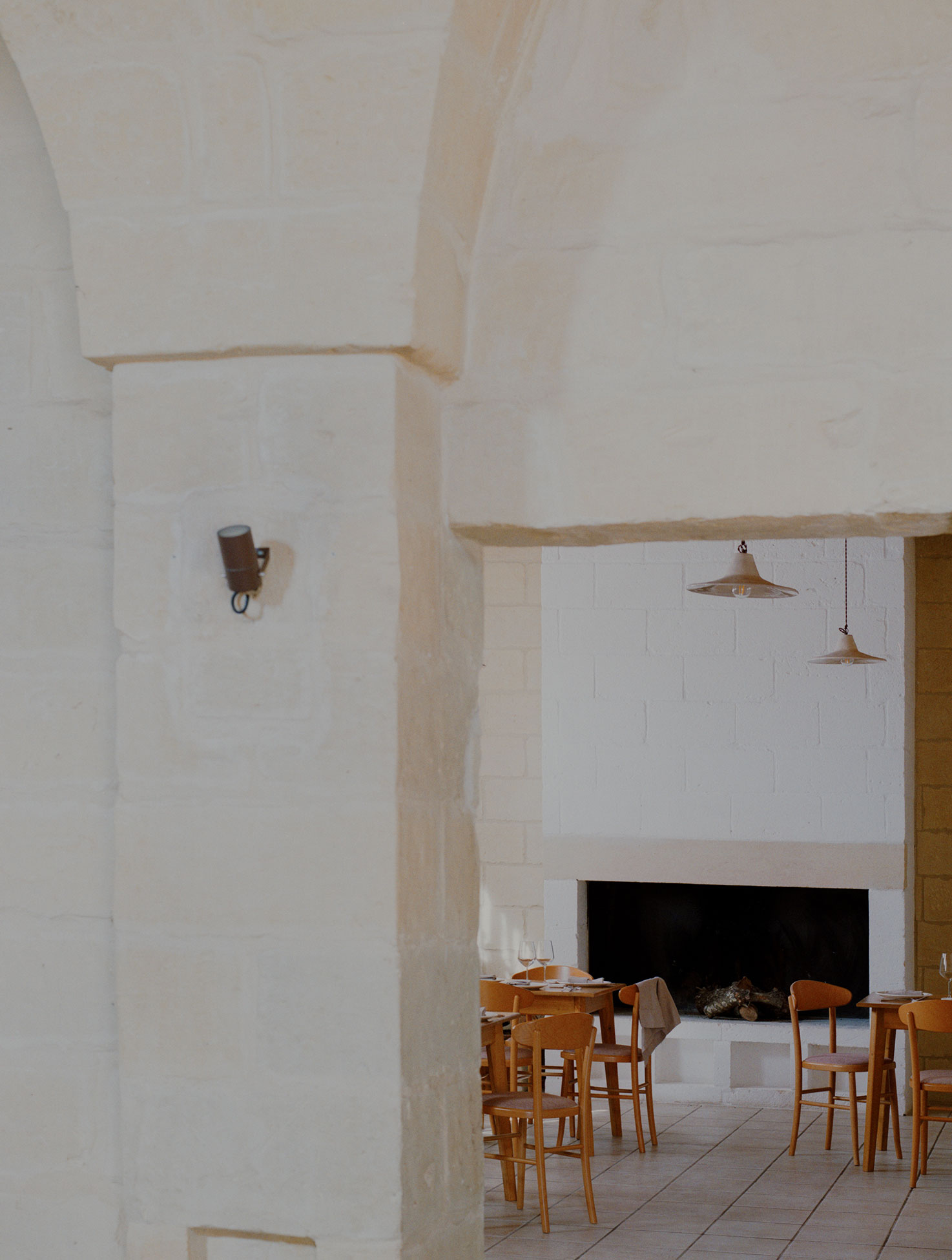 Caronte is the restoration project of a farmhouse in the Salento countryside, completed by Margine in 2025. In the lands between Lecce and Vernole, surrounded by olive trees and just a few kilometers from the sea, stands Masseria Caronte, a rural home where sheep were once raised and wool and yarn were produced. Over the years, after numerous businesses and years of abandonment, the structure underwent a major renovation and conversion into a restaurant in 2024. Commissioned by a group of young local entrepreneurs, Margine proposed a project aimed at eliminating the numerous additions that had occurred over time and restoring the factory’s ancient charm.