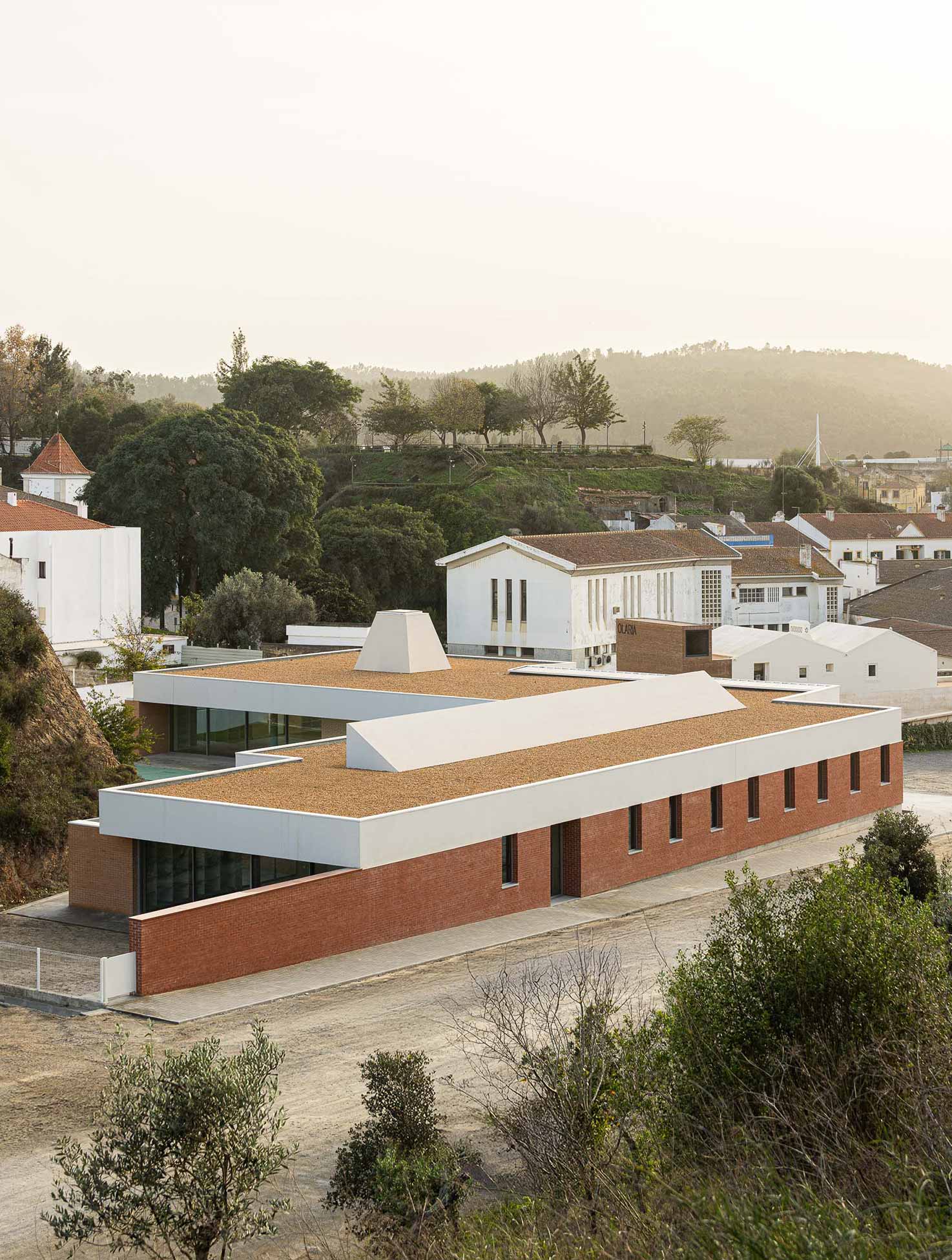 The main entrance to the building is via a new road to be built within the town of Odemira, in urban dialogue with the Municipal Olaria building, resulting in an orderly urban finish to Quinta da Estrela, which is planned to be landscaped and will also include an ordered public parking.