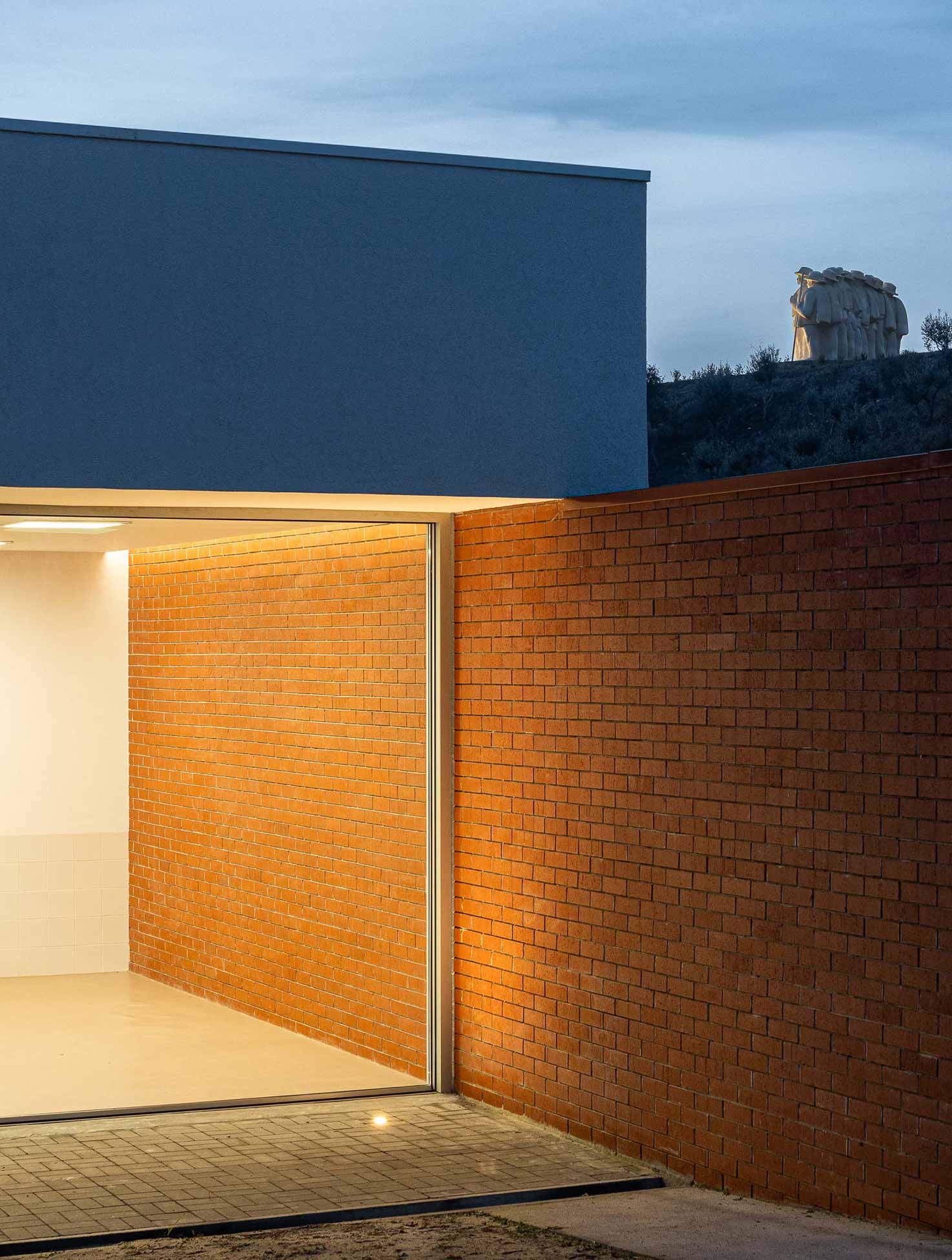 The APCO´s building has an “inclusive design” hence why it is built on a single level with no physical barriers between interior and exterior. The only exception is the main entrance, seen as a “podium” for this public building, accessible through a ramp. The urban elevation has a classic triptych composition with stylobate, body and entablature. From a perspective angle, we also find a sequential gradient of colors blending with the predominant shade of white of the town. The ocher dialogues with the hillside and the red marks the Architecture.